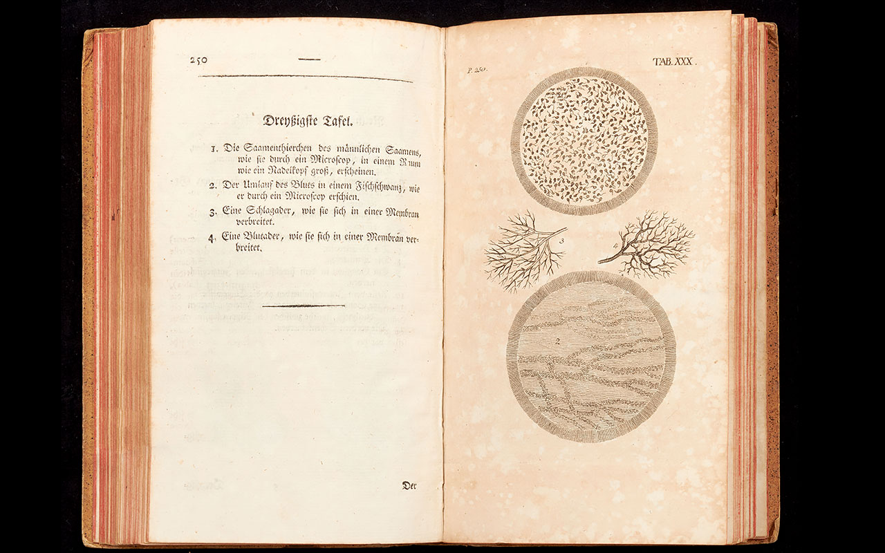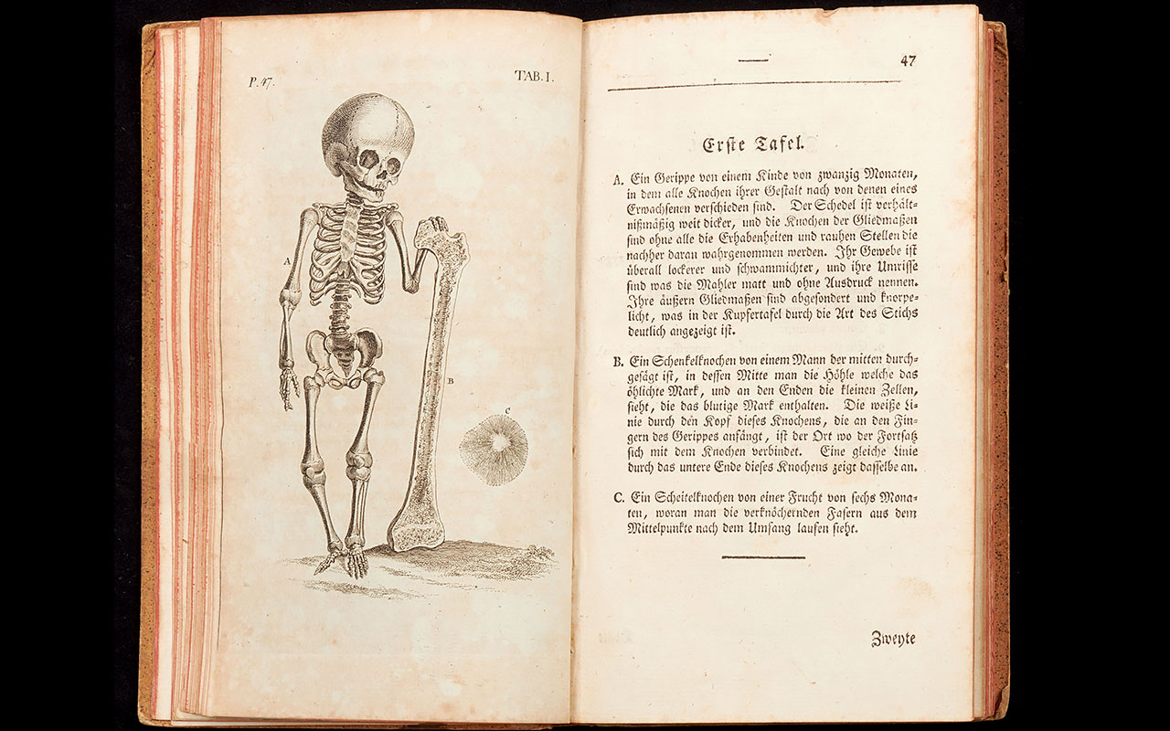 Das kleinformatige anatomische Werk von William Cheselden wird erstmals 1713 in Englisch herausgegeben. Obschon das Buch auch im deutschsprachigen Raum gelobt wird, erscheint die erste deutsche Übersetzung erst 1790. Ihr Titel lautet «Anatomie des menschlichen Körpers».